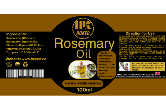 HuKed Rosemary Oil – 100% Pure Essential Oil for Hair Growth, Focus & Skin Health | Natural Antioxidant & Anti-Inflammatory | 100ml | Handmade in the UK