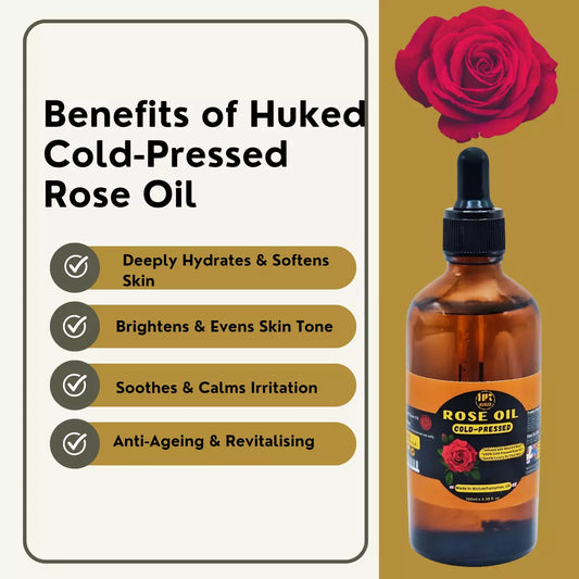 Huked Cold-Pressed Rose Oil – 100% Pure, Hydrating & Brightening Oil for Skin & Hair | Anti-Inflammatory, Infused with Real Rose Petal - 60ml